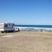 Jeffreys Bay Caravan Park is a large grassy campground right in front of the beach. It's a gorgeous location for pitching your tent, and has a playground, bathrooms, showers, hot water, electricity and braais.
