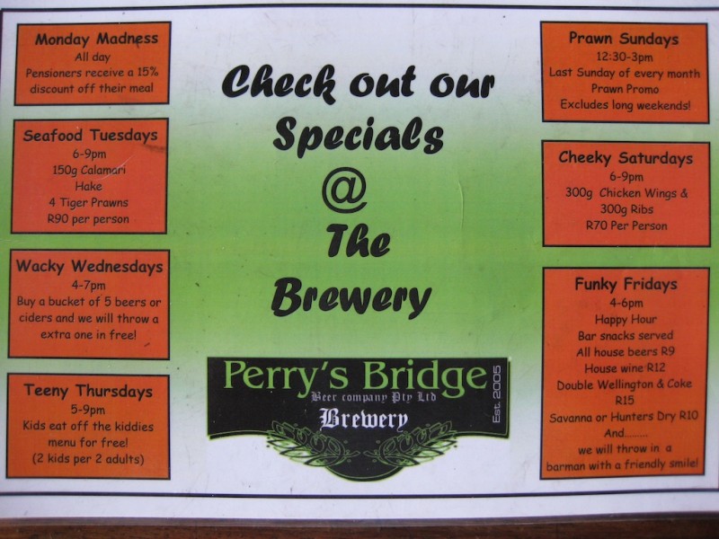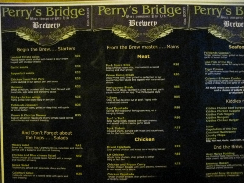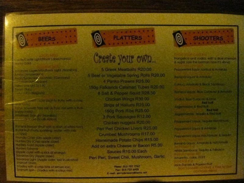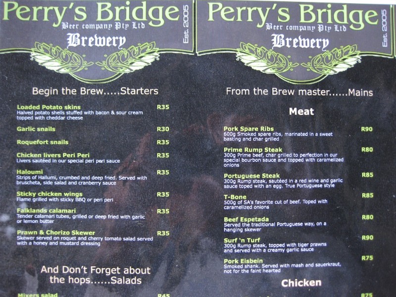 Perry's Bridge Brewery is the place to go for a quality beer in Hazyview. They have a handful of micro-brews on tap as well as a good selection of imports and wine.