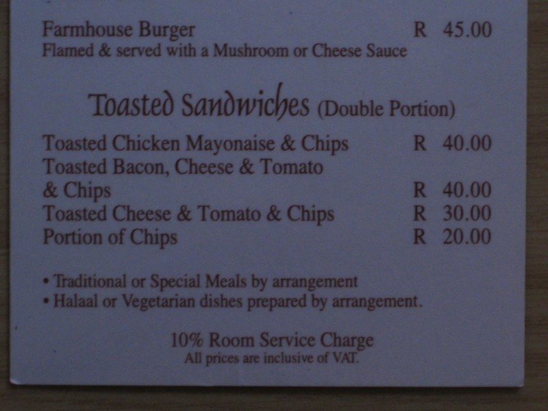 Garden View Lodge has both standard and self-catering open rooms inside a family's house with TV, AC and a mini-fridge. There is a central courtyard with tables and chairs and an area to braai. It has an attached restaurant (6:30pm-9pm Mon-Thurs, mains R45-65) and Garden View Bar (5pm-9pm Mon-Thurs). It is best suited for those looking for a guesthouse experience.