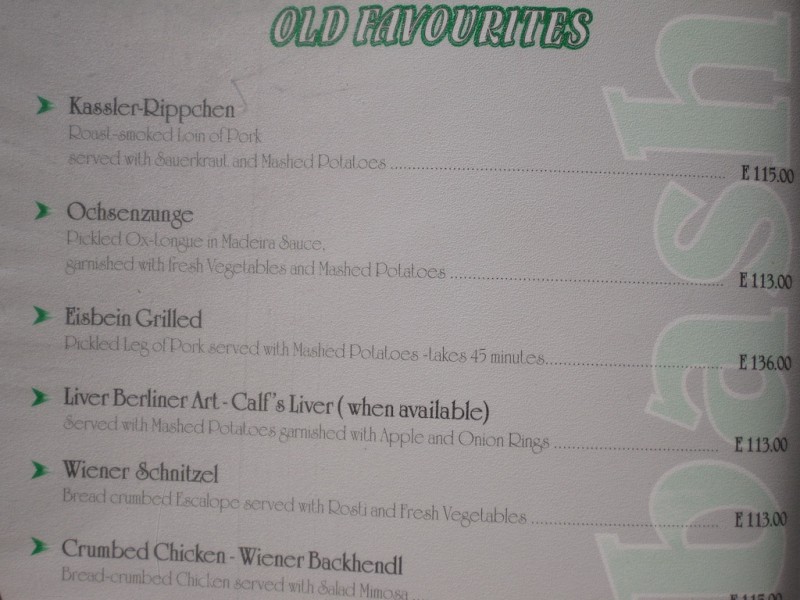 Calabash Restaurant is one of the top restaurants in the country, with a focus on Austrian, German and Swiss cuisine. The restaurant has been around since 1976 and the attention given to the interior design is complemented by the staff's impeccable service and quality food. Try the Kassler-Rippchen or grilled Eisbein.