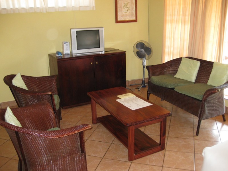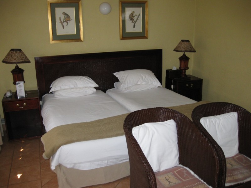 Timbali Lodge has a main thatched roof lodge that houses a bar and The Boma Restaurant (12pm-10pm, mains E40-100), which is worth coming to even if you are not staying at Timbali. Outside of the lodge is a spanking clean swimming pool and 30 chalets spread throughout the premises.
