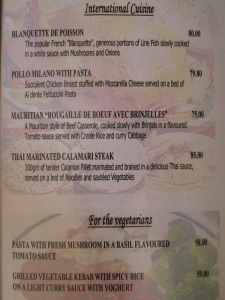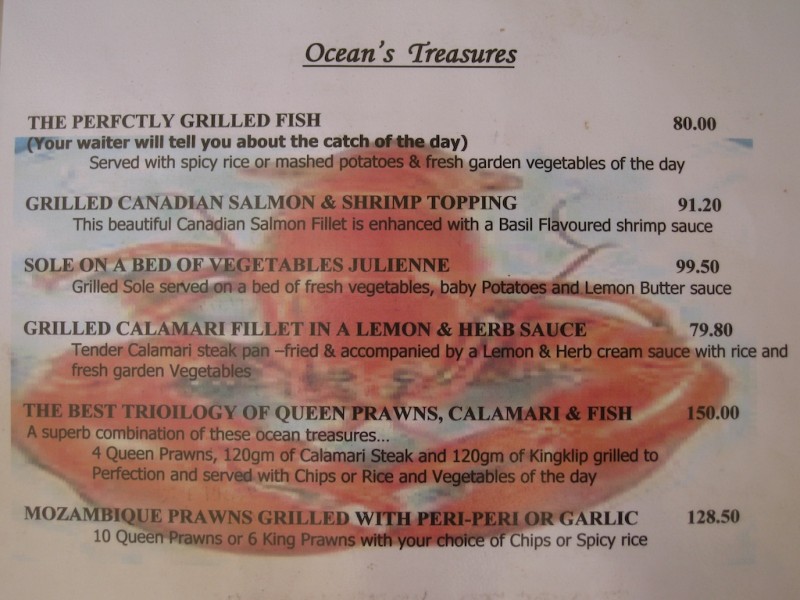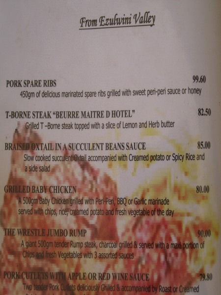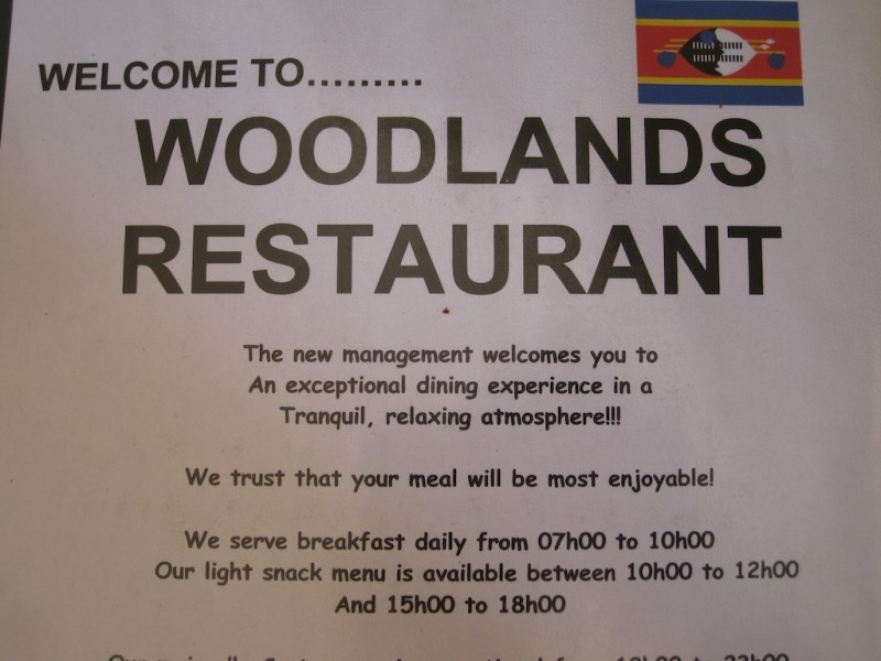 Woodlands Restaurant is cozy, with a burning fireplace in the evenings. Woodlands participates in the slow food movement - the meat and vegetables are sourced locally in Ezulwini Valley and the meals are delicious. There is also a good selection of desserts.