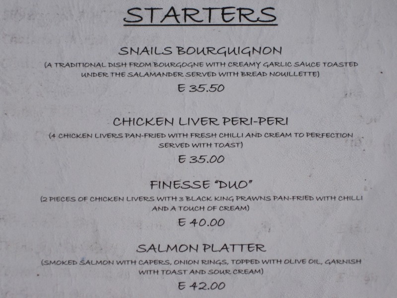 Finesse Restaurant & Bar has a cozy atmosphere with an open wood-burning stove that heats the inside. The large outdoor seating area is popular during the day. Their menu offers a good selection of meat, fish, prawns, curries and vegetarian options. Attached next door is a small but equally cozy bar.